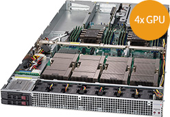 Up to 4x GPUs in 1U, Supports Active/Passive GPUs, 2x 10GBase-T LAN ports via Intel X540, 4 PCI-E 3.0 x16 (FHFL), 1 PCI-E 3.0 x16 (LP) and 1 PCI-E 3.0 x8 (LP)