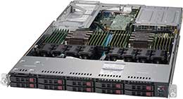 Optimised for Cloud Computing, Web Server and Compact Network Appliance. 10x Hot-swap 2.5" SAS/SATA HDD bays, 2x 10GBase-T LAN ports via Intel X722, High Efficiency Redundant Power Option.