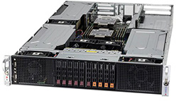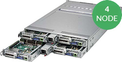4 node solution optimised for HPC, hyper-converged infrastructure and big data. 2x PCI-E 4.0 x16 and 1x PCI-E 4.0 x8 slots per node. Redundant power.