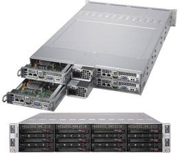 Two Nodes in 2U - 2 PCI-E 3.0 x8 (FH/HL), Dedicated IPMI 2.0 LAN, 6x Hot-swap 3.5" SATA3 Drive Bays, Redundant Power Option. Optimised for HPC, Data Centres and Virtualisation.