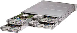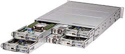 Four Nodes in 2U - 1x PCI-E 3.0 x16 (LP) slot, Dedicated IPMI 2.0 LAN, Redundant Power Option. Optimised for HPC, Data Centres and Financial Analysis.