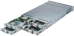 Four hot-swappable nodes in 2U, ideal for compute intensive applications and HPC, 2x PCI-E 3.0 x16 (LP) slot, IPMI 2.0 + KVM with dedicated LAN.