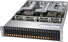 Ideal for HPC, MEC, Cloud Gaming, Multi-purpose CDN, High-availability Cache Cluster and EDA. Quad Node 2U Form Factor. Redundant 2200W Power Supply, 6x 2.5" hot-swap NVMe/SATA drive bays (Per Node)
