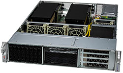 Dual 3rd Gen Intel Xeon Scalable Processors, Supports Up to 3 dual-width GPU cards, Redundant 2000W Power Supply. 6x 2.5" NVMe/SATA hot swappable drive bays.
