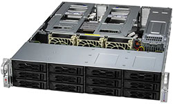 4 node system ideal for big data/big science, hyperconverged infrastructure and HPC. 2x PCI-E 4.0 x16 slots, 1x PCI-E 4.0 x8 slot and 16 DIMMs of memory per node.