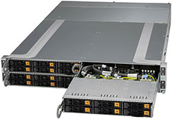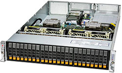 Ideal for Hyperconverged Infrastructure, Storage Area Network, and All-Flash Object Storage. Dual Node 2U Form Factor. Redundant 2200W Power Supply, 12x 2.5" hot-swap NVMe/SAS drive bays (Per Node)