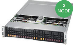 Two Nodes in a 2U Form Factor - 24x U.2 Hot-swap dual-port NVMe Drive Bays, 2x PCI-E 3.0 x16 HHHL slots, 1x PCI-E 3.0 x16 SIOM, Dual port 10GBase-T, Redundant Power Option.