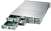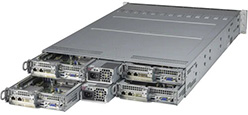 Four Nodes in 2U - 2x PCI-E 3.0 x16 (LP) slot; 1x SIOM card support, IPMI 2.0 + KVM with dedicated LAN. Redundant Power Option.