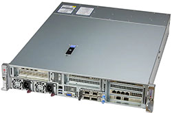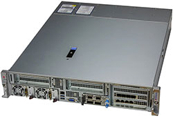 Optimised for hyperconverged infrastructure, scale-out file storage. Four hot-pluggable systems (nodes) in a 2U form factor. Redundant power supply.