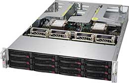 Optimised for Virtualisation, Hyperconverged Storage, Cloud Computing. 1x PCI-E 3.0 x16 slot, 7x PCI-E 3.0 x8 slots, 10G SFP+ Ethernet ports, 12x Hot-swap 3.5" Drive Bays, Redundant Power Option.