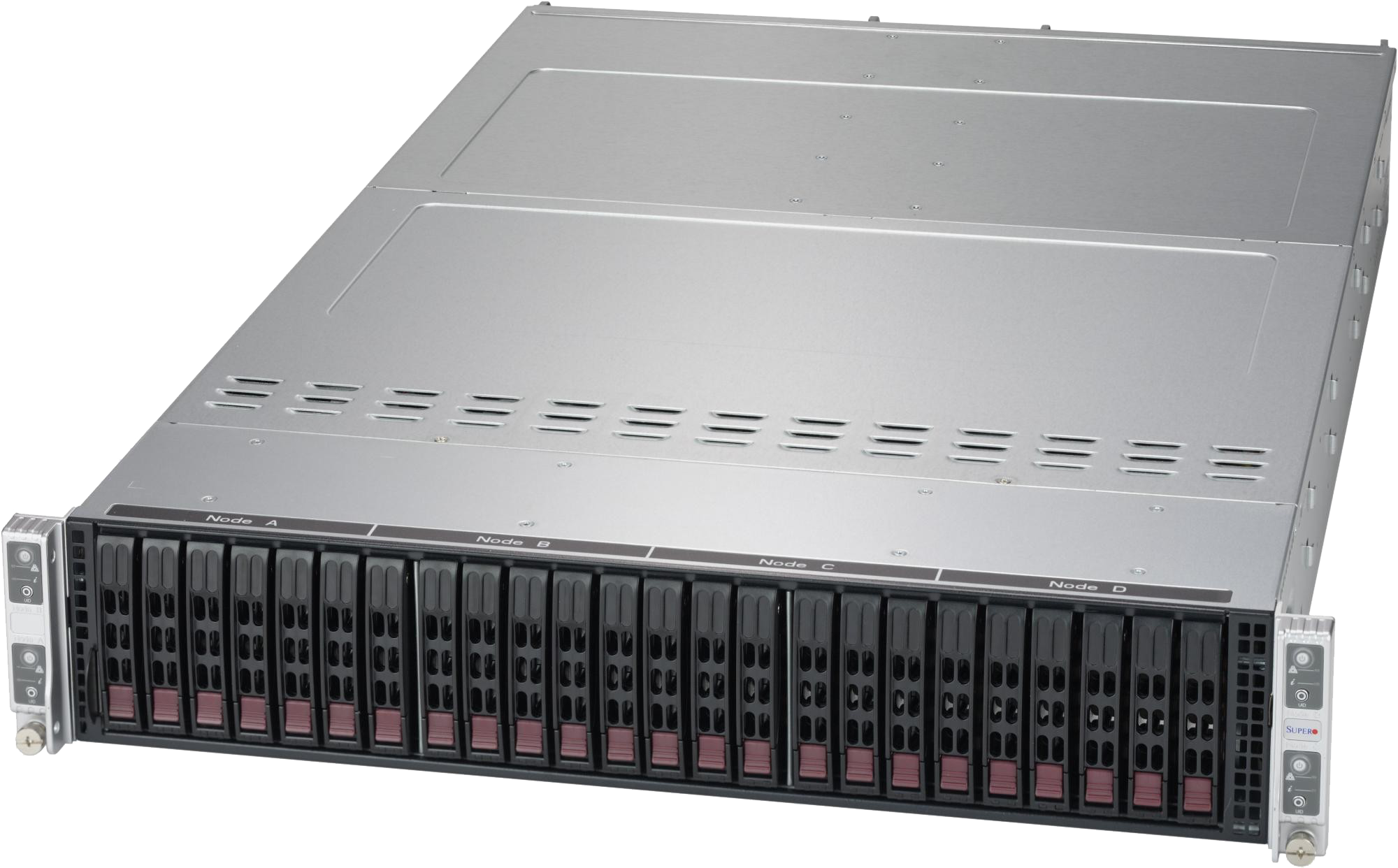 Four Nodes in 2U - 2x PCI-E 3.0 x16 (LP) slot; 1x SIOM card support, IPMI 2.0 + KVM with dedicated LAN. Redundant Power Option.