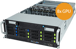 Dual Intel Xeon 6 Series Processor, Supports 8 x Dual Slot Gen5 GPUs, Dual 10Gb/s LAN ports. 3000W Redundant power supplies, 8x 3.5"/2.5" NVMe/SATA/SAS & 4x 3.5" SATA/SAS hot swap drive bays.