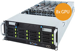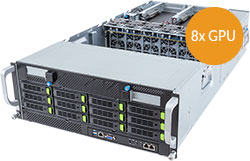 Up to 8x NVIDIA Tesla® V100 PCIe GPGPU cards. Dual 10Gb/s BASE-T LAN ports. Aspeed® AST2500 remote management controller. Redundant power option.