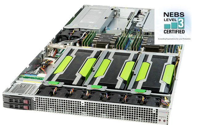 NEBS Level 3 certified for Telecommunication. Ideal for Telecom Central Office and Data Center, 5G Core and Edge Computing, AI Inference and Machine Learning.