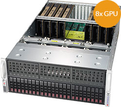 Supports up to 8x GPUs, Up to 24x Hot-swap 2.5" drive bays, 2x 10GBase-T LAN ports via Intel C622