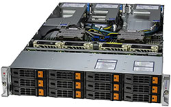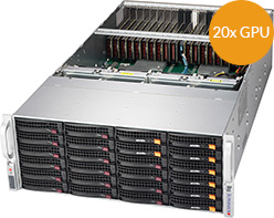 Up to 6x Double Width Passive GPUs, 4-Way MP, 24x Hot-Swap 3.5" SAS3/SATA3 Drive Bays, 4x 10GBase-T LAN ports, Redundant Power Option.