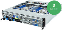 Triple Node, Single AMD EPYC 9004 series processor(Per Node), 3x FHHL PCIe Gen5 x16 slots & 3x LP PCIe Gen5 x16 slots, 3000W Redundant Power Supply, 6x E1.S Gen4 NVMe hot-swappable bays.