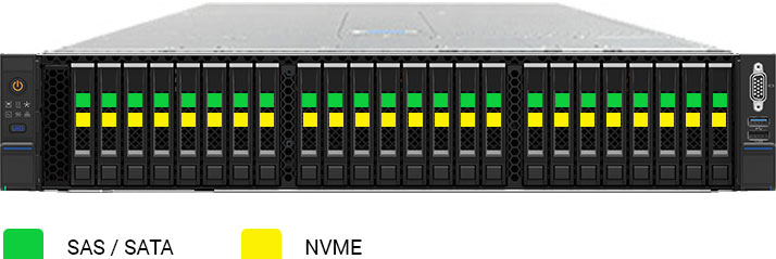 This system can be configured with SATA drives for cost-effective 12gb/s storage.