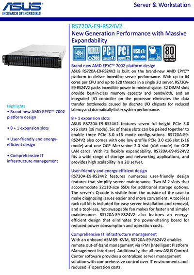 Brand new AMD EPYC™ 7002 platform design, Friendly Design and Premium Efficiency, Complete Remote Server Management