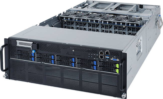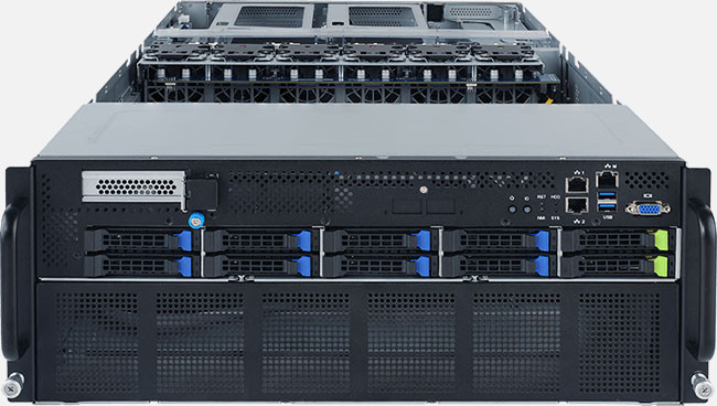 NVIDIA-Certified system for scalability, functionality, security, and performance. Up to 8x PCIe Gen4 GPGPU cards. Dual 1Gb/s BASE-T LAN ports. Dedicated management port. Redundant power.