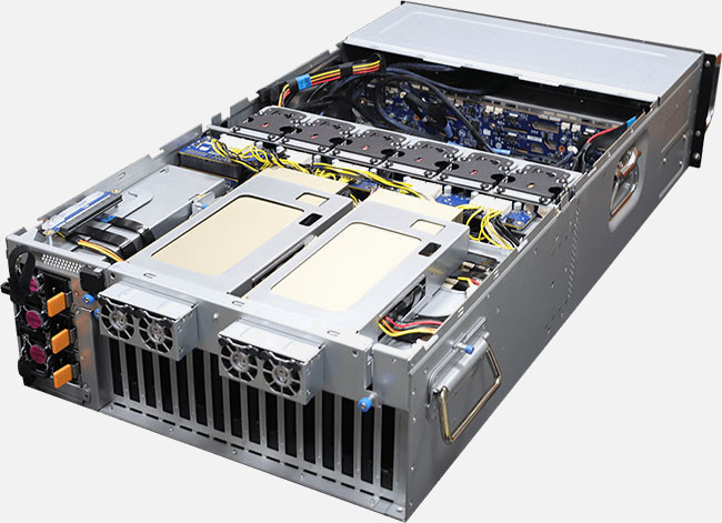 Up to 10 x PCIe GPGPU cards. Dual 10Gb/s LAN ports. AST2500 Graphics & Remote Management controller. Redundant power.