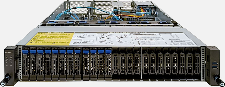 The Gigabyte R282-Z97 (6NR282Z97MR-00-A) can be configured with hot-swap drives, allowing you to remove and replace the drives whilst the system is running with no interruption.