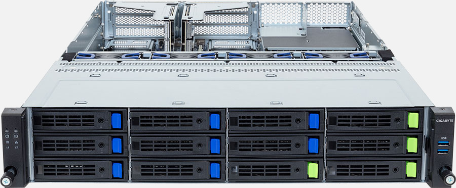 This system can be configured with SATA drives for cost-effective 12gb/s storage.