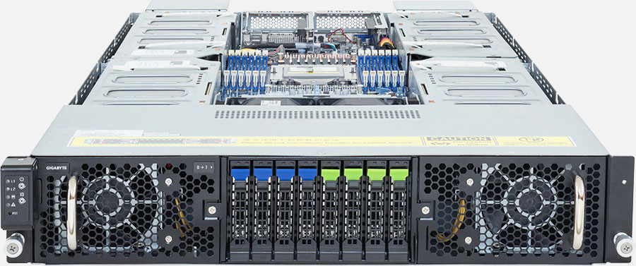 The CyberServe EPYC EP1 208-4NVMe GPU G5 boasts high density storage and ultimate energy efficiency, catering for up to 8x High-Performance 2.5" SSD or Hard Drives