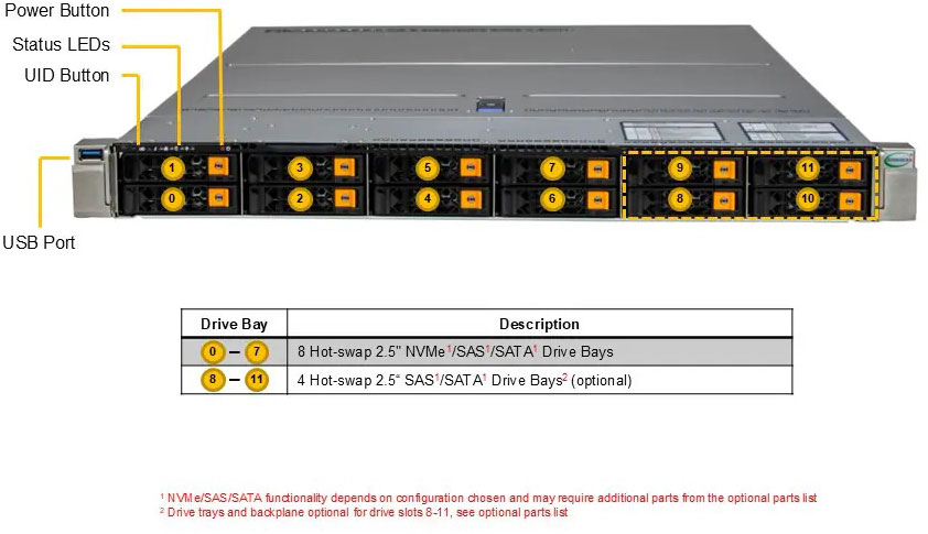 The CyberServe EPYC EP2 108S-NVMe G5 *In Stock* boasts high density storage and ultimate energy efficiency, catering for up to 8x High-Performance 2.5" SSD or Hard Drives