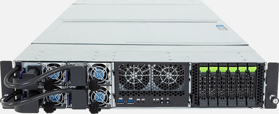 Short Depth Dual AMD EPYC 9005 / 9004 Series Server with 4x GPU Slots, 6x 2.5" Gen4 NVMe Hot-Swappable bays