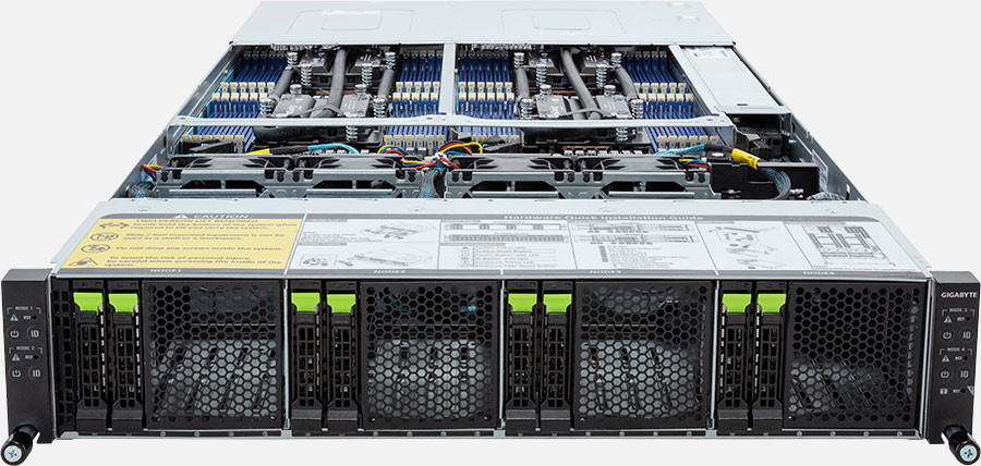 Water Cooling, Quad Node, Dual AMD EPYC 9004 series processor(Per Node), 4x LP PCIe Gen5 x16 slots, 8x 1Gb/s LAN ports (Intel® I350-AM2), 2600W Redundant Power Supply, 8x NVMe/SATA/SAS hot-swappable bays.