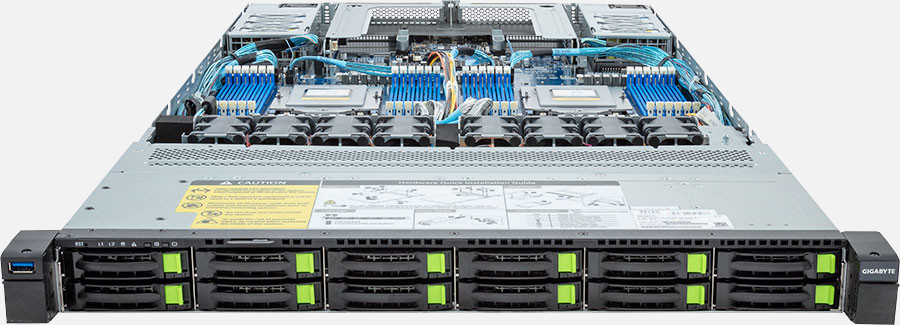 The Gigabyte R183-Z92 (6NR183Z92DR000AAD1) can be configured with hot-swap drives, allowing you to remove and replace the drives whilst the system is running with no interruption.