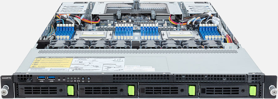 The Gigabyte R183-Z93 (6NR183Z93DR000AAD1) can be configured with hot-swap drives, allowing you to remove and replace the drives whilst the system is running with no interruption.