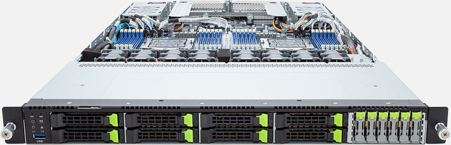 The Gigabyte R183-Z95 (6NR183Z95DR000AAD1) can be configured with hot-swap drives, allowing you to remove and replace the drives whilst the system is running with no interruption.