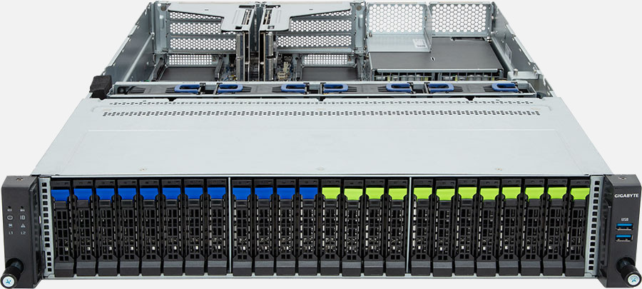 The Gigabyte R263-Z32 (6NR263Z32DR000AAD1) can be configured with hot-swap drives, allowing you to remove and replace the drives whilst the system is running with no interruption.