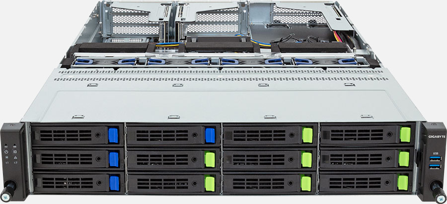 The Gigabyte R263-Z35 (6NR263Z35DR000AAF1) can be configured with hot-swap drives, allowing you to remove and replace the drives whilst the system is running with no interruption.