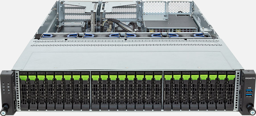 The Gigabyte R263-Z36 (6NR263Z36DR000AAD1) can be configured with hot-swap drives, allowing you to remove and replace the drives whilst the system is running with no interruption.