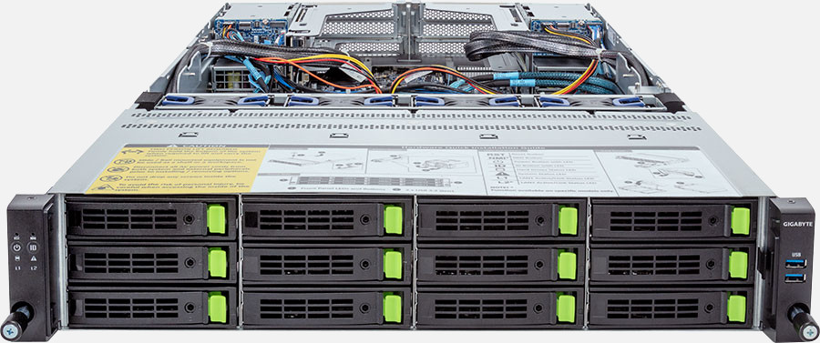 The Gigabyte R283-Z90 (6NR283Z90DR000AAV1) can be configured with hot-swap drives, allowing you to remove and replace the drives whilst the system is running with no interruption.
