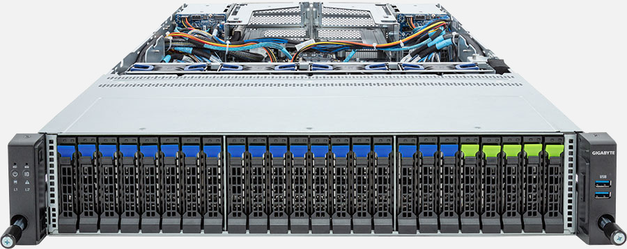 The Gigabyte R283-Z96 (6NR283Z96DR000AAJ2) can be configured with hot-swap drives, allowing you to remove and replace the drives whilst the system is running with no interruption.