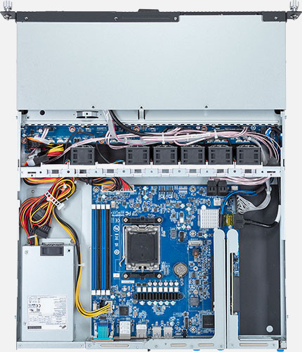 This server supports SATA drives, which are very cost-effective and adept at dealing with mass storage.