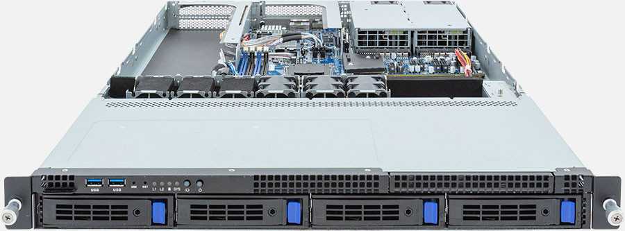 The Gigabyte R133-C10 (6NR133C10MR000ABG1) can be configured with hot-swap drives, allowing you to remove and replace the drives whilst the system is running with no interruption.