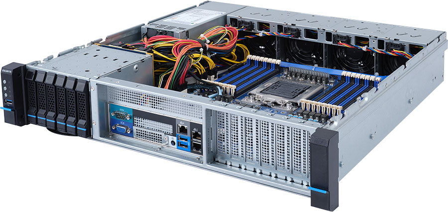 This server supports SATA drives, which are very cost-effective and adept at dealing with mass storage.