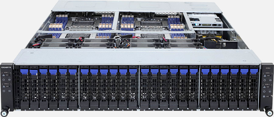 The Gigabyte H262-P60 (6NH262P60MR-00-1) can be configured with hot-swap drives, allowing you to remove and replace the drives whilst the system is running with no interruption.