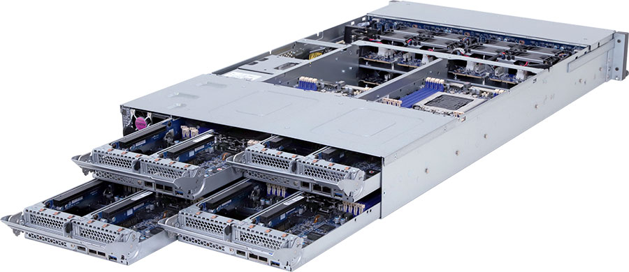 Quad Node, Dual Ampere® Altra series processors, 2x LP PCIe Gen4 x16 slots, 2x 1Gb/s LAN ports (Intel® I350-AM2), 2200W redundant power supply, 6x 2.5" SATA hot-swappable drive bays (Per Node).