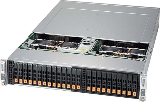 Two Nodes in a 2U Form Factor - IPMI 2.0 + KVM with Dedicated LAN, 12x Hot-swap 2.5" NVMe Drive Bays, Redundant Power Option.