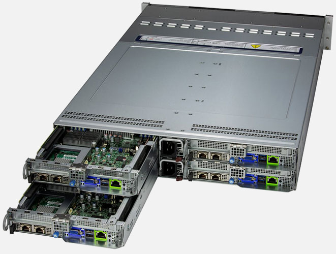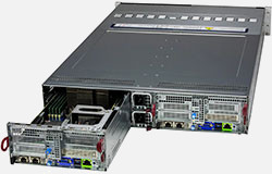 Ideal for Mission Critical HPC, Virtualized Big Data Analytics and High-Density Storage RAID Array. Quad Node 2U Form Factor. Redundant 3000W Power Supply, 6x 2.5" hot-swap NVMe/SAS drive bays (Per Node)