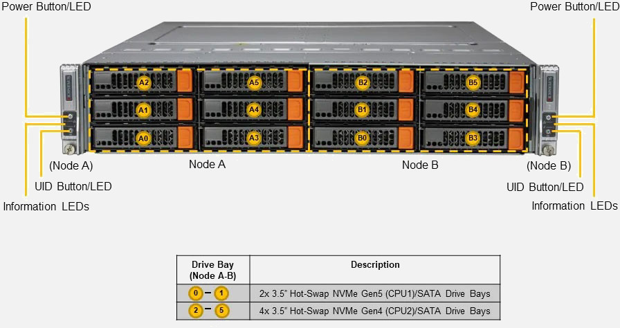 The Supermicro BigTwin SuperServer 621BT-DNTR | SYS-621BT-DNTR features hot-swap hard drives, giving you more flexibility and allowing you to remove drives without having to shut down the system.