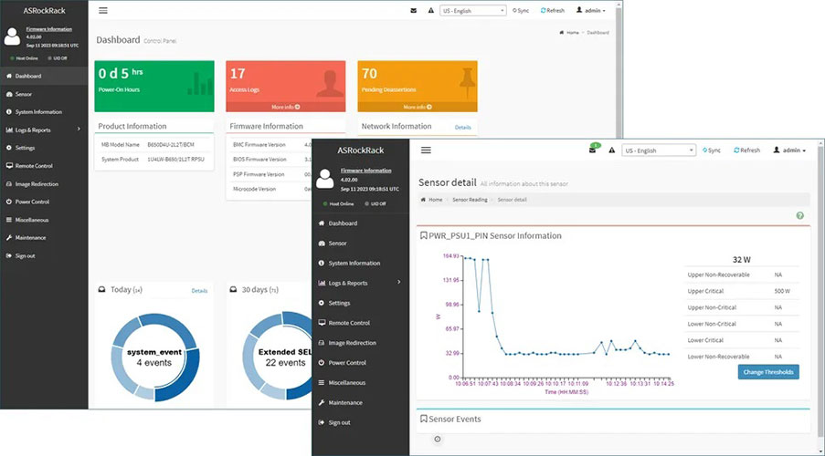 The free ASRockRack Server Management tool can be used to manage multiple ASRock servers from a single console and we had no problems installing it on a Windows Server 2022 host. Its network discovery tool found the CyberServe's IPMI controller and the dashboard page presented details on its firmware version and a table of all hardware sensors with their current values.