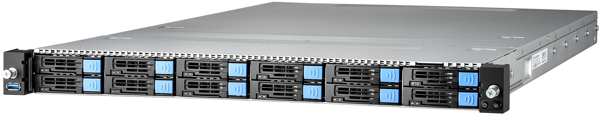 1U2S Cloud Server, 12 SFF. 2x FH/HL PCIe Gen 5.0 x16 slots. 12x NVMe hot swap drive bays, 1200W Redundant power supply.