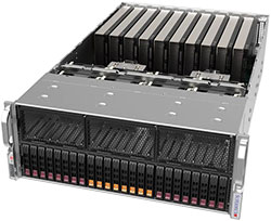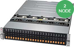 Two Nodes in a 2U Form Factor - 24x U.2 Hot-swap dual-port NVMe Drive Bays, 2x PCI-E 3.0 x16 HHHL slots, 1x PCI-E 3.0 x16 SIOM, Dual port 10GBase-T, Redundant Power Option.